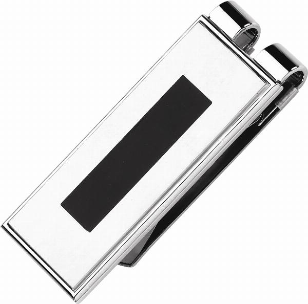 Sterling Silver Money Clip – Polished Finish with Black Enamel
